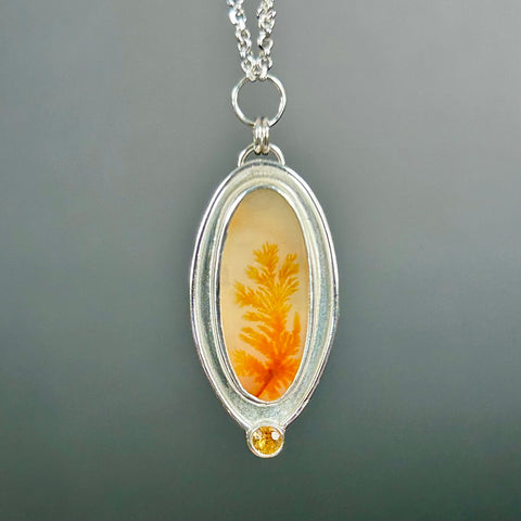 Dendritic Agate, Mandarin Garnet, .925 Necklace by Kate Wells Crooked River Jewelry